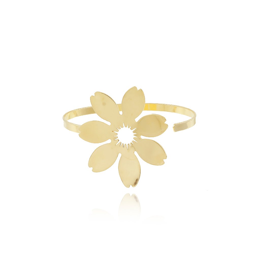 Encante-se com esse bracelete!Este lindo bracelete COM FLOR é feito com LATÃO BANHADO A OURO 18K de alta qualidade.