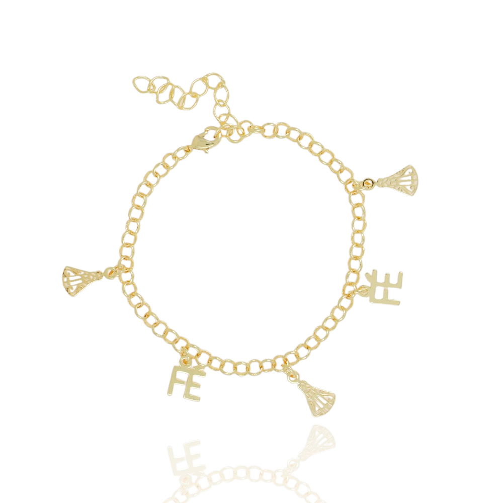 Encante-se com essa pulseira!Esta linda pulseira DE NOSSA SENHORA APARECIDA E FÉ é feita com LATÃO BANHADO A OURO 18K de alta qualidade.