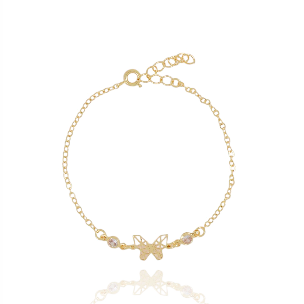 Encante-se com essa pulseira!Esta linda pulseira DE BORBOLETA INFANTIL COM ZIRCÔNIA CRISTAL é feita com LATÃO BANHADO A OURO 18K de alta qualidade.