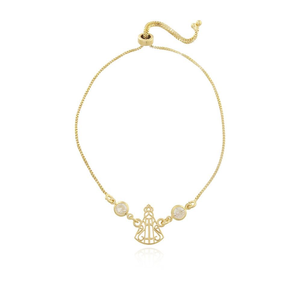 Encante-se com essa pulseira!Esta linda pulseira REGULÁVEL DE NOSSA SENHORA APAREIDA VAZADA é feito com LATÃO BANHADO A OURO 18K de alta qualidade.