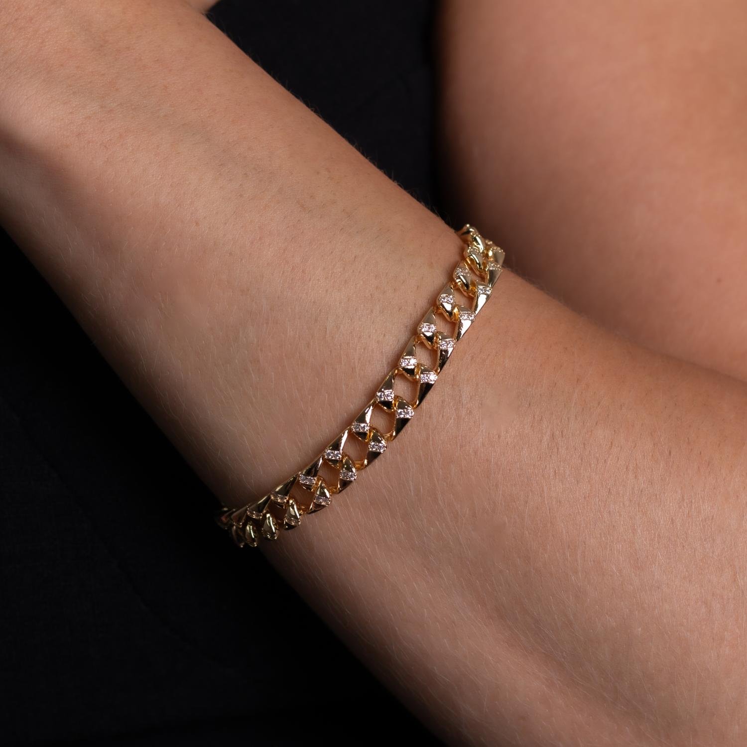 Encante-se com essa pulseira!Esta linda pulseira DE ELOS COM ZIRCÔNIAS CRISTAIS é feita com LATÃO BANHADO A OURO 18K de alta qualidade.