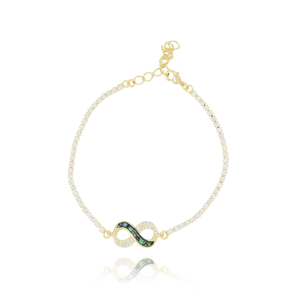 Encante-se com essa pulseira!Esta linda pulseira INFINITO CRAVEJADA CRISTAL é feita com LATÃO BANHADO A OURO 18K de alta qualidade.