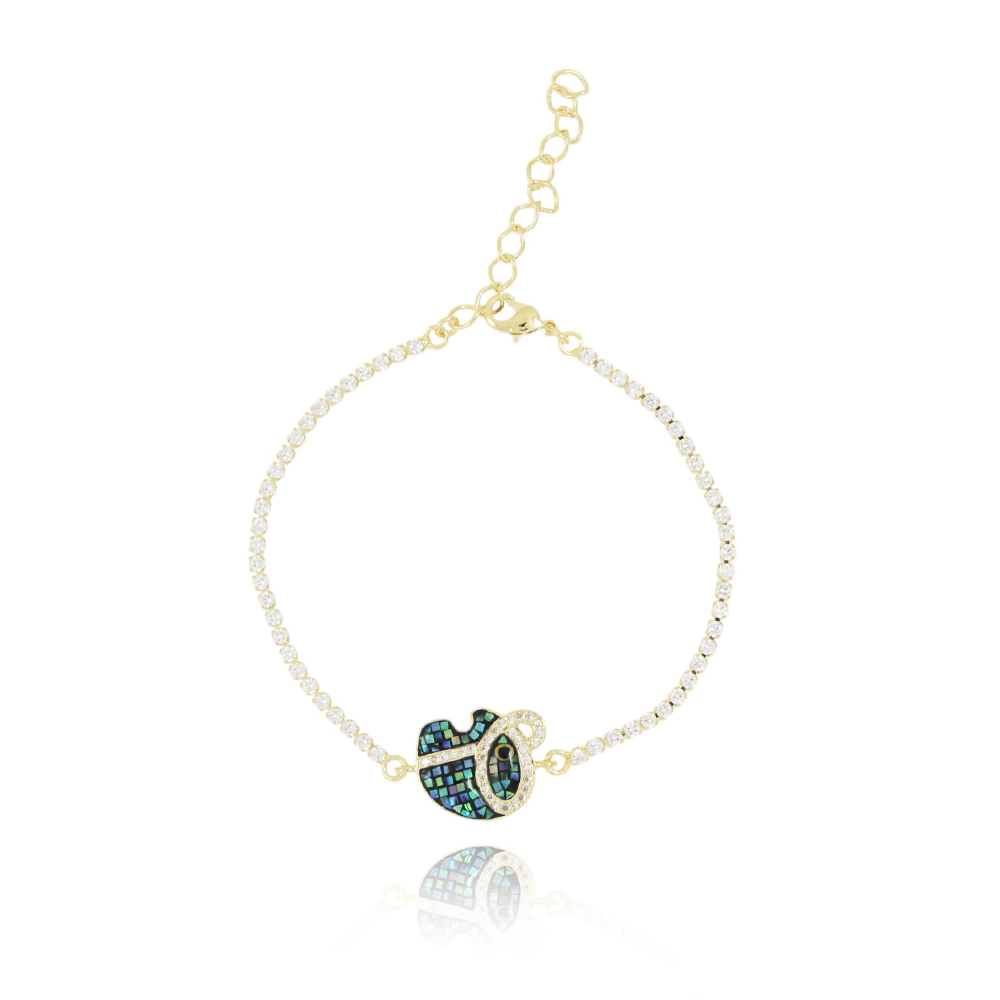 Encante-se com essa pulseira!Esta linda pulseira DE ELEFANTE CRAVEJADA DE ZIRCÔNIAS CRISTAIS é feita com LATÃO BANHADO A OURO 18K de alta qualidade.