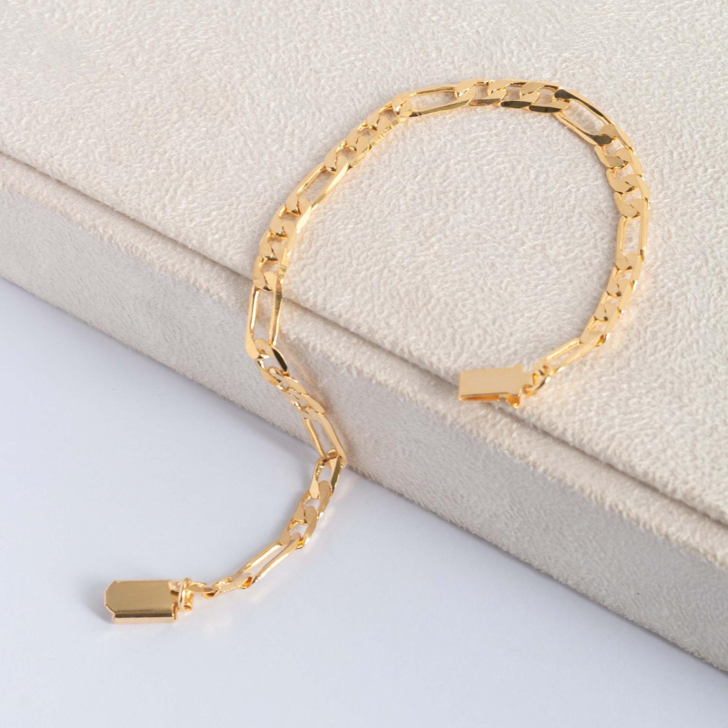 Encante-se com essa pulseira!Esta linda pulseira DE ELOS FÍGARO MASCULINA é feita com LATÃO BANHADO A OURO 18K de alta qualidade.