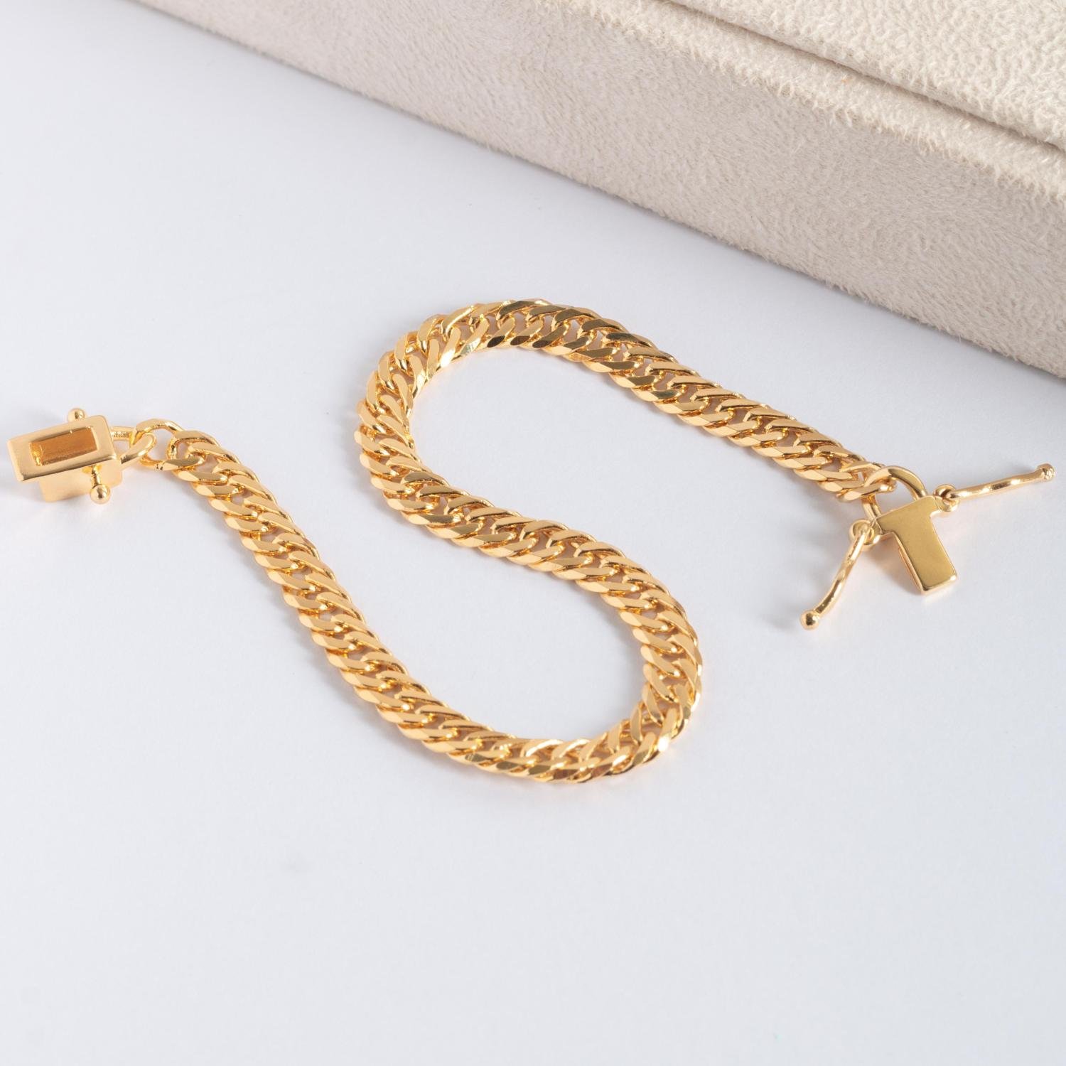 Encante-se com essa pulseira!Esta linda pulseira MASCULINA DE ELOS COM FECHO GAVETA é feita com LATÃO BANHADO A OURO 18K de alta qualidade.