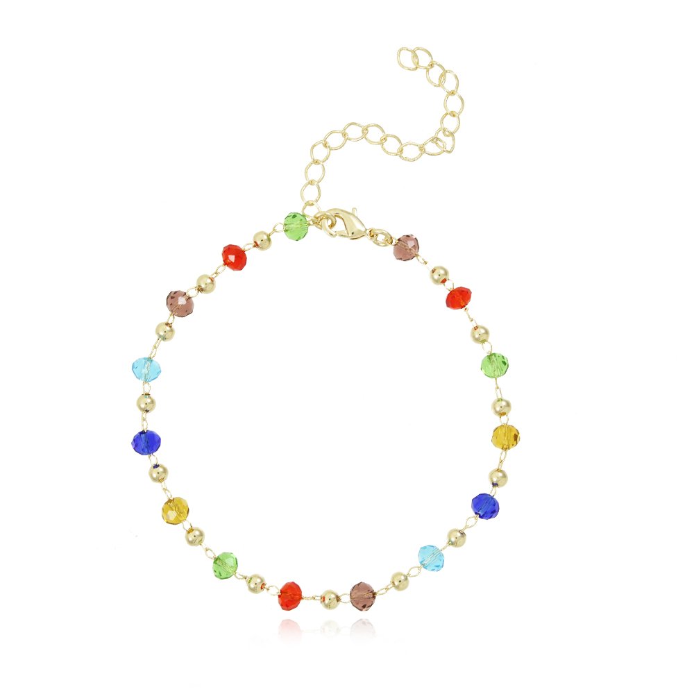 Encante-se com essa pulseira!Esta linda pulseira DE BOLINHAS COLORIDAS é feita com LATÃO BANHADO A OURO 18K de alta qualidade.