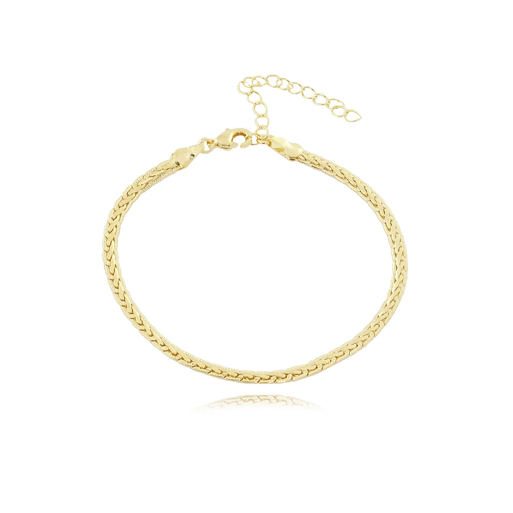 Encante-se com essa pulseira!Esta linda PULSEIRA TRANÇADA é feita com LATÃO BANHADO A OURO 18K de alta qualidade.