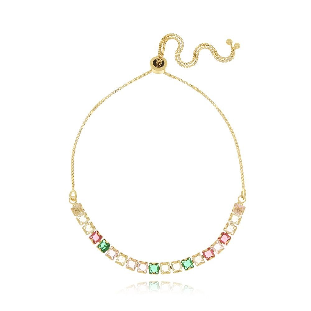 Encante-se com essa pulseira!Esta linda pulseira DE RIVIERA CRISTAL AJUSTÁVEL é feita com LATÃO BANHADO A OURO 18K de alta qualidade.