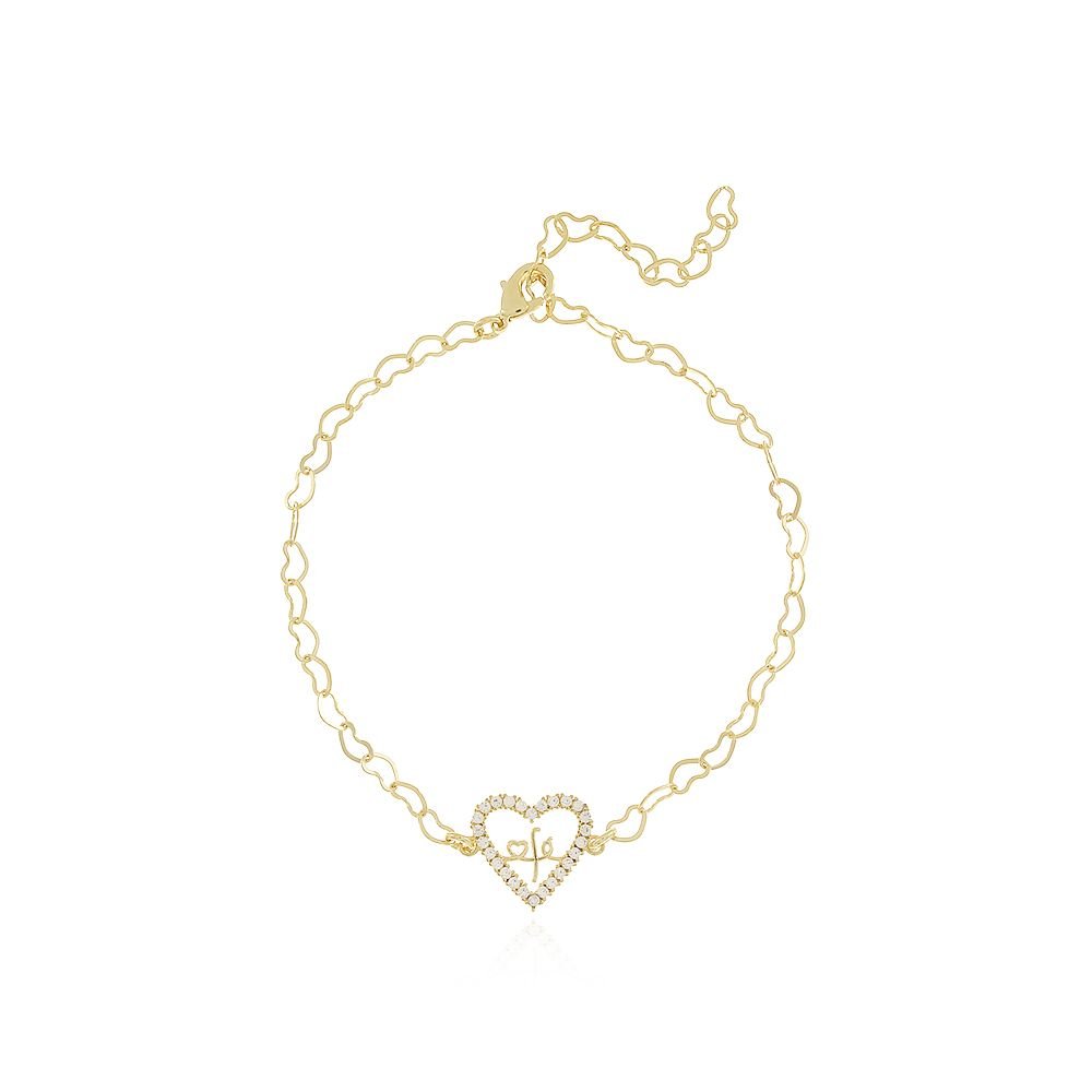 Encante-se com essa pulseira!Esta linda pulseira CORAÇÃO ESCRITO FÉ CRAVEJADO CRISTAL é feita com LATÃO BANHADO A OURO 18K de alta qualidade.