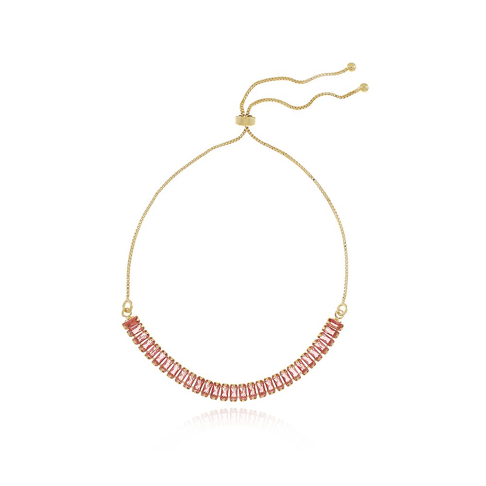 Encante-se com essa pulseira!Esta linda pulseira RIVIERA BAGUETE CEISTAL é feita com LATÃO BANHADO A OURO 18K de alta qualidade.