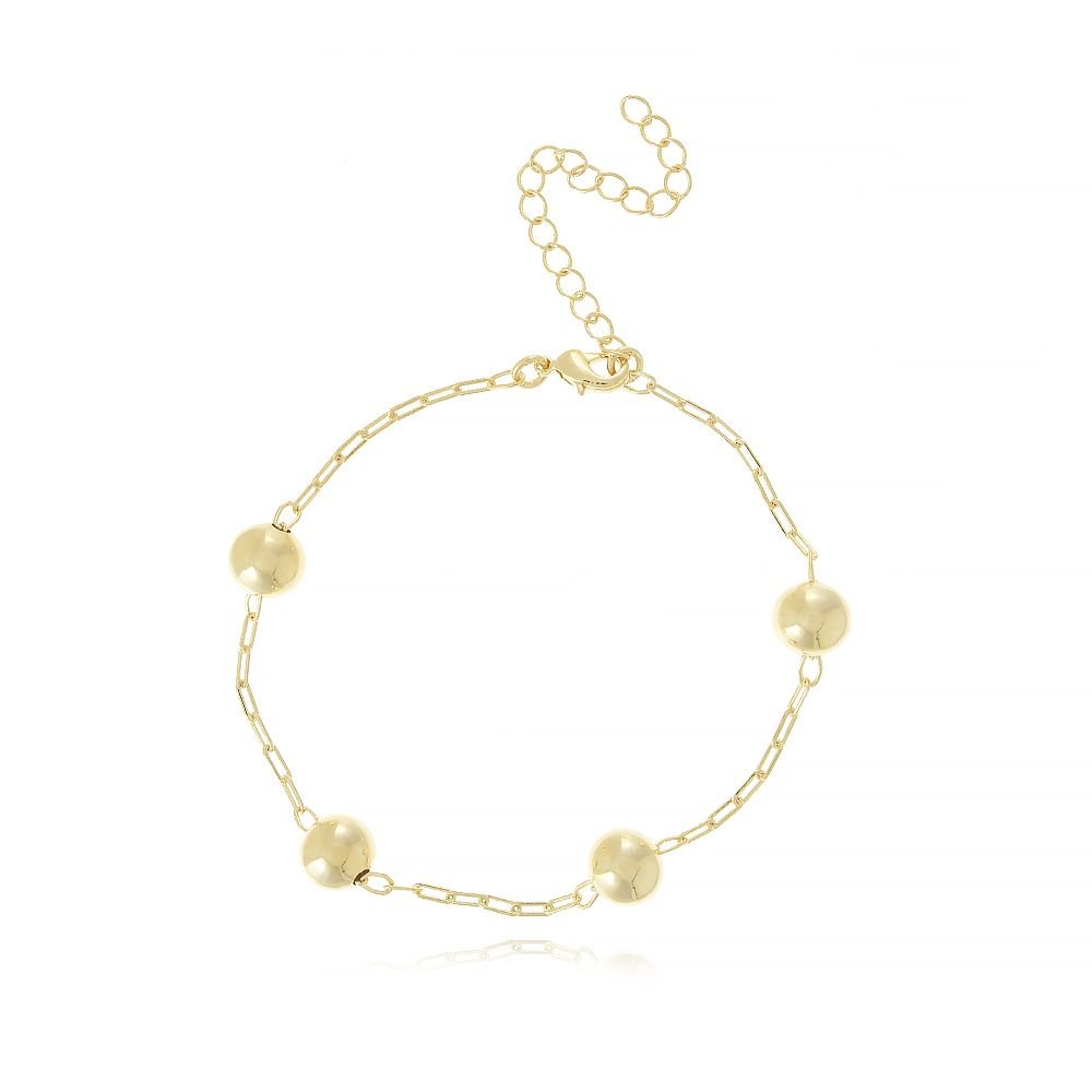 Encante-se com essa pulseira!Esta linda pulseira DE BOLINHAS é feita com LATÃO BANHADO A OURO 18K de alta qualidade.
