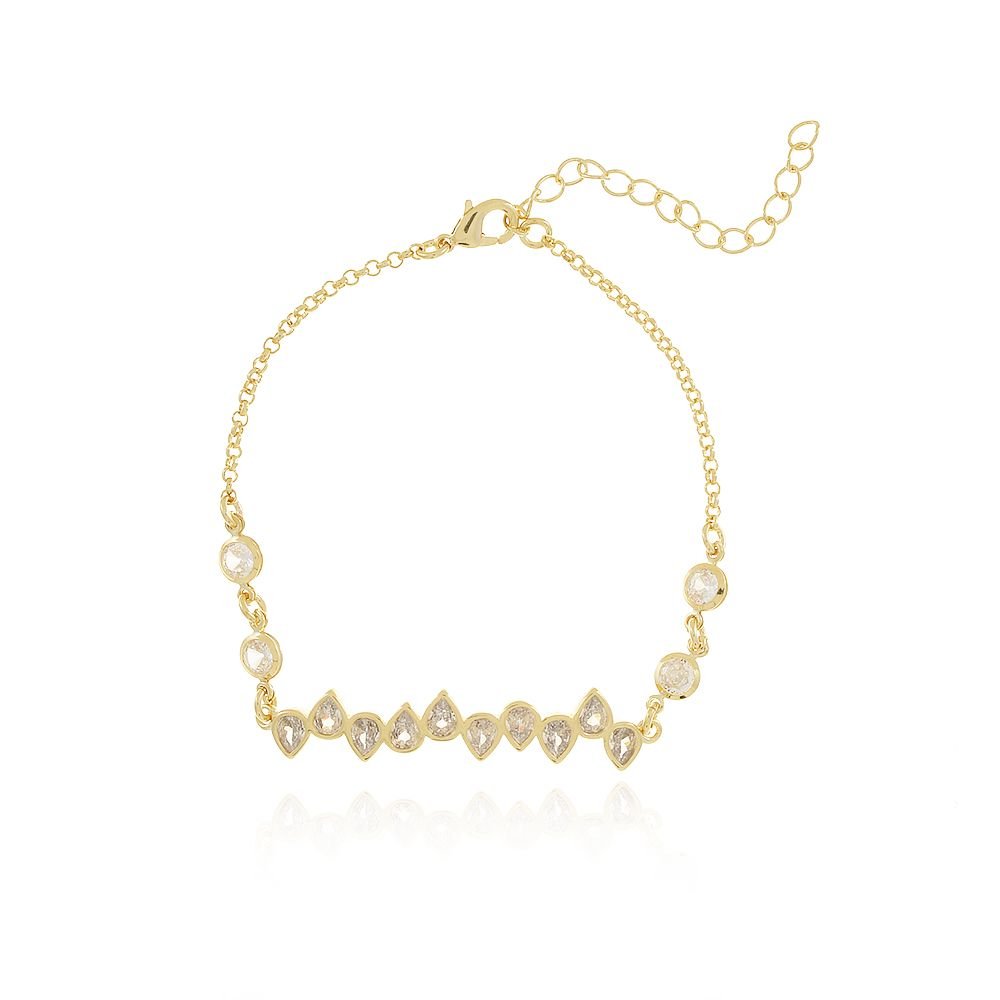 Encante-se com essa pulseira!Esta linda PULSEIRA DE ZIRCÔNIAS CRISTAL é feita com LATÃO BANHADO A OURO 18K de alta qualidade.