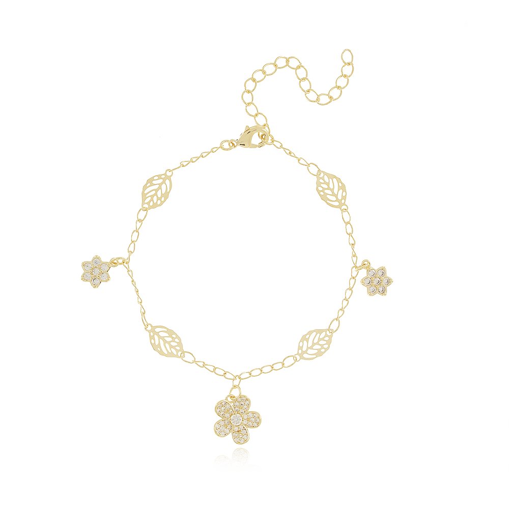 Pst-2846-Fo Pulseira De Folhas E Flores Cravejada De Zircônia Cristal.