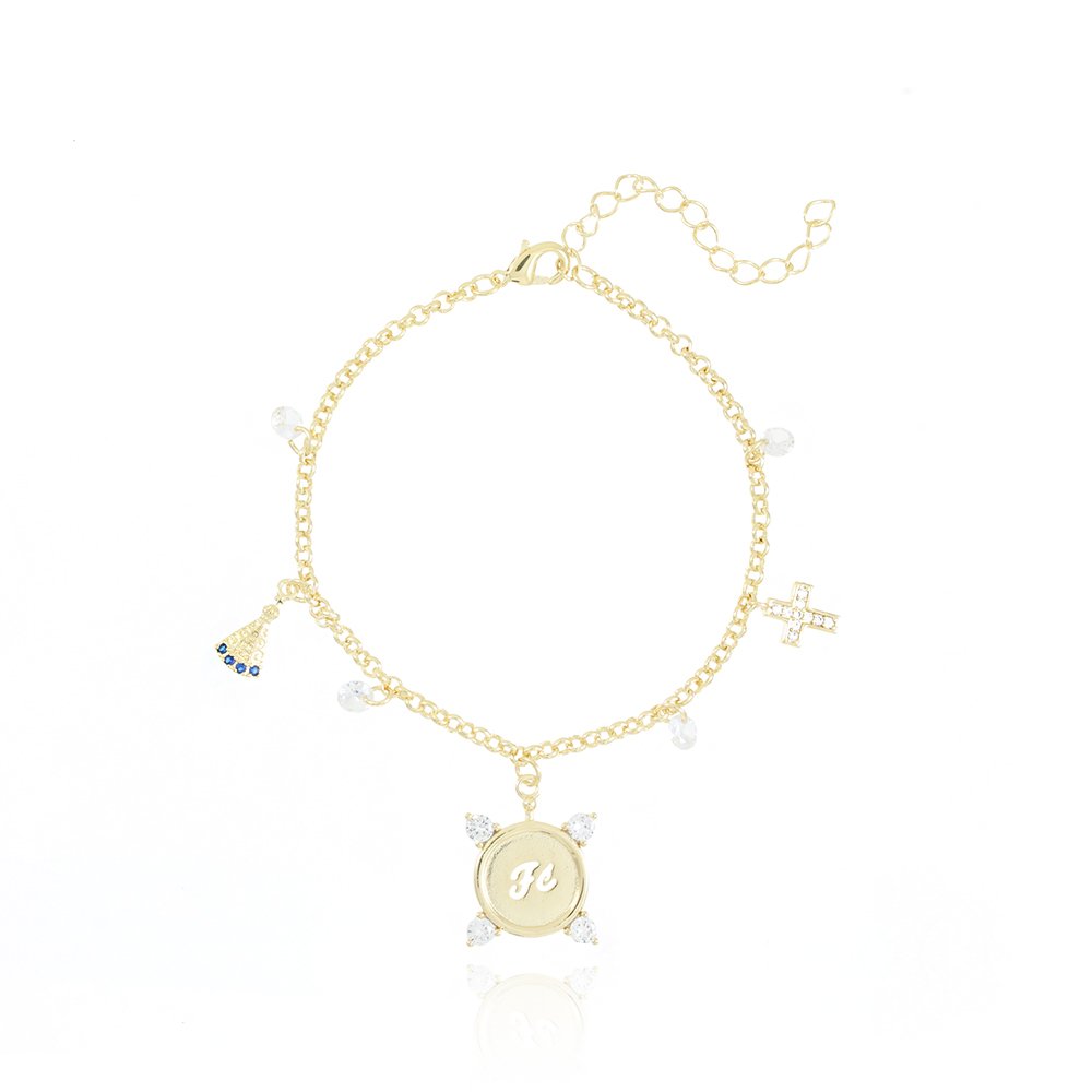 Pst-2959-Fo Pulseira Fé Com Pingentes Religiosos Cravejados De Zircônias
