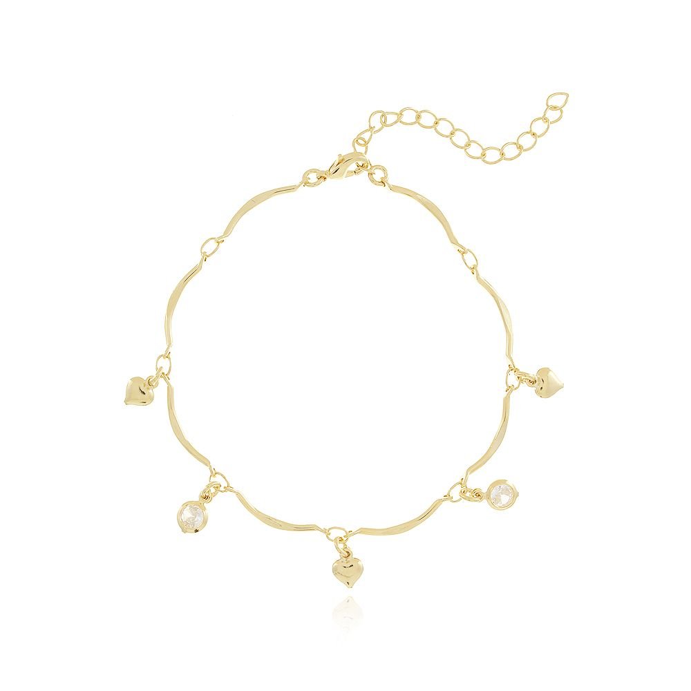 Encante-se com essa pulseira!Esta linda pulseira DE CORAÇÕES E ZIRCÔNIAS é feita com LATÃO BANHADO A OURO 18K de alta qualidade.