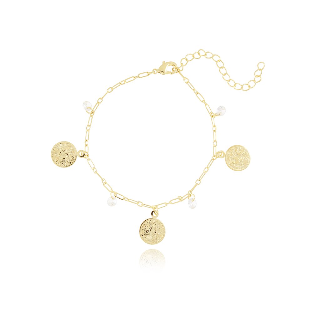 Encante-se com essa pulseira!Esta linda pulseira ELOS PEDRAS E MEDALHAS DE SÃO BENTO é feita com LATÃO BANHADO A OURO 18K de alta qualidade.