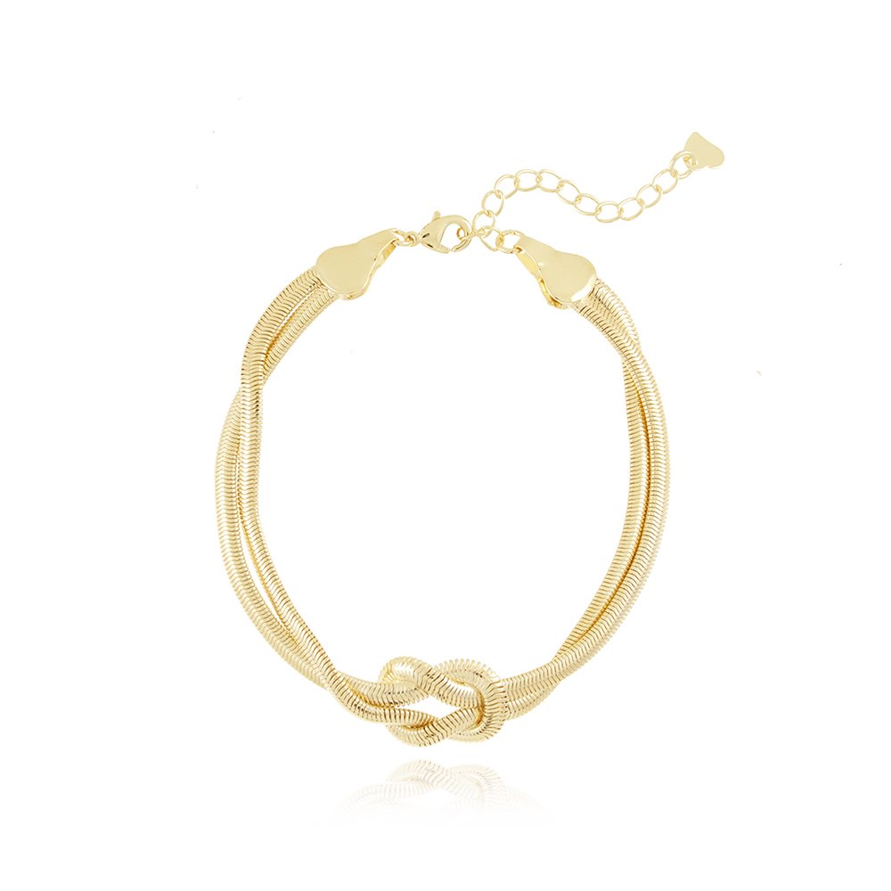 Encante-se com essa pulseira!Esta linda PULSEIRA DUPLA DE NÓ é feita com LATÃO BANHADO A OURO 18K de alta qualidade.