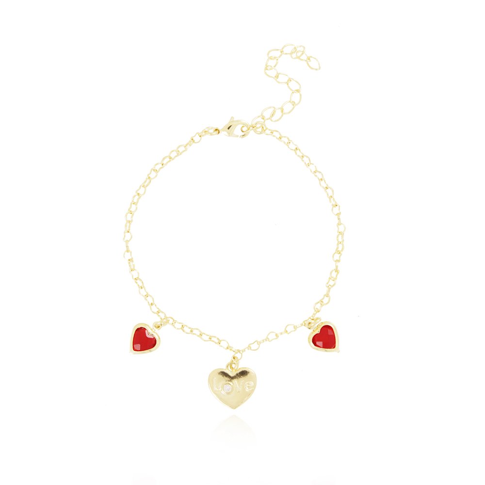 Encante-se com essa pulseira!Este lindo pulseira COM CORAÇÕES CRAVEJADO DE ZIRCÔNIAS VERMELHA é feito com LATÃO BANHADO A OURO 18K de alta qualidade.