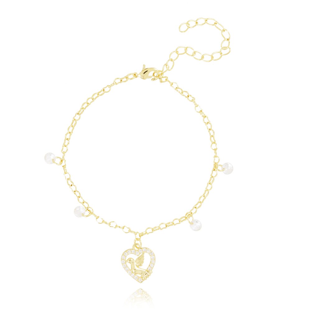 Encante-se com essa pulseira!Esta linda pulseira COM PINGENTE DE ESPÍRITO SANTO CRAVEJADO E ZIRCÔNIAS é feito com LATÃO BANHADO A OURO 18K de alta qualidade.