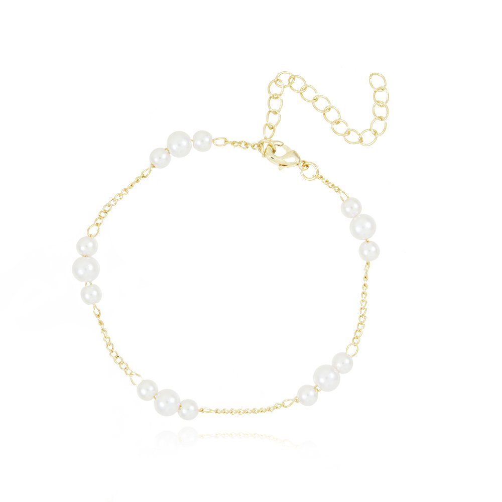Encante-se com essa pulseira!Esta linda pulseira DE PÉROLAS é feita com LATÃO BANHADO A OURO 18K de alta qualidade.