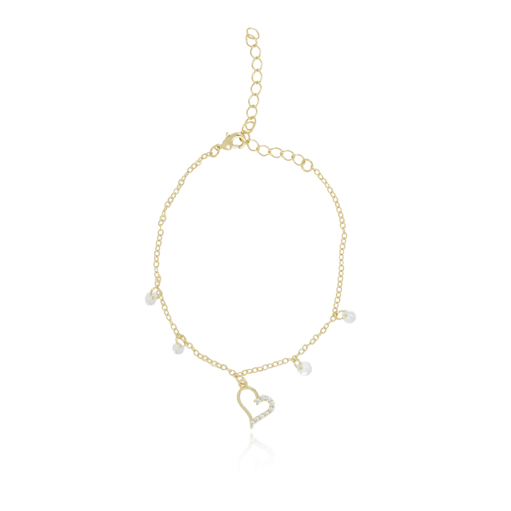 Encante-se com essa pulseira!Esta linda pulseira COM PINGENTE DE CORAÇÃO E ZIRCÔNIAS CRISTAIS é feita com LATÃO BANHADO A OURO 18K de alta qualidade.