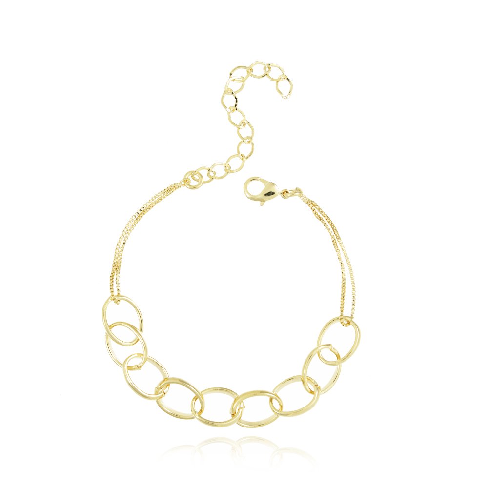 Encante-se com essa pulseira!Esta linda pulseira DE ELOS é feita com LATÃO BANHADO A OURO 18K de alta qualidade.