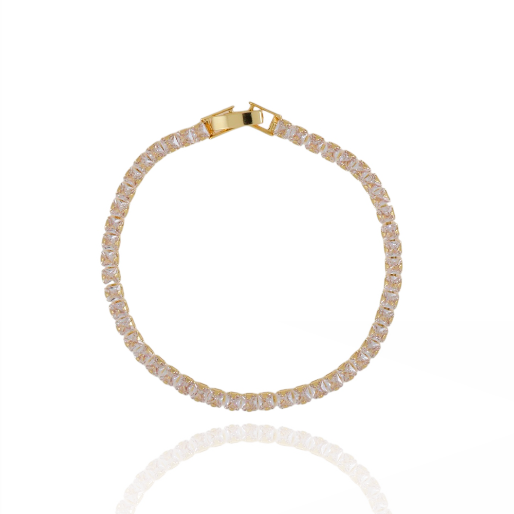 Encante-se com essa pulseira!Esta linda pulseira RIVIERA CARRÊ CRISTAL COM FECHO GAVETA é feita com LATÃO BANHADO A OURO 18K de alta qualidade.