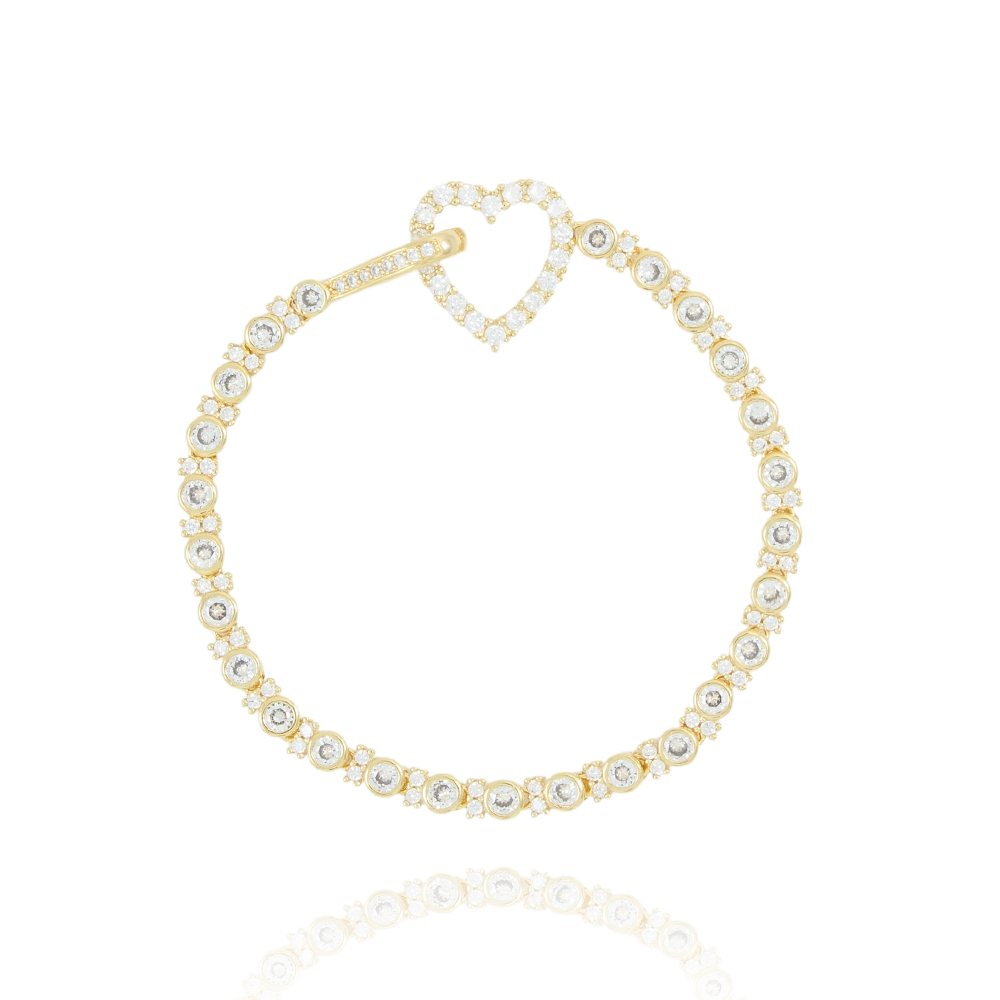 Encante-se com essa pulseira!Esta linda pulseira CRAVEJADA COM CORAÇÃO CRISTAL é feita com LATÃO BANHADO A OURO 18K de alta qualidade.