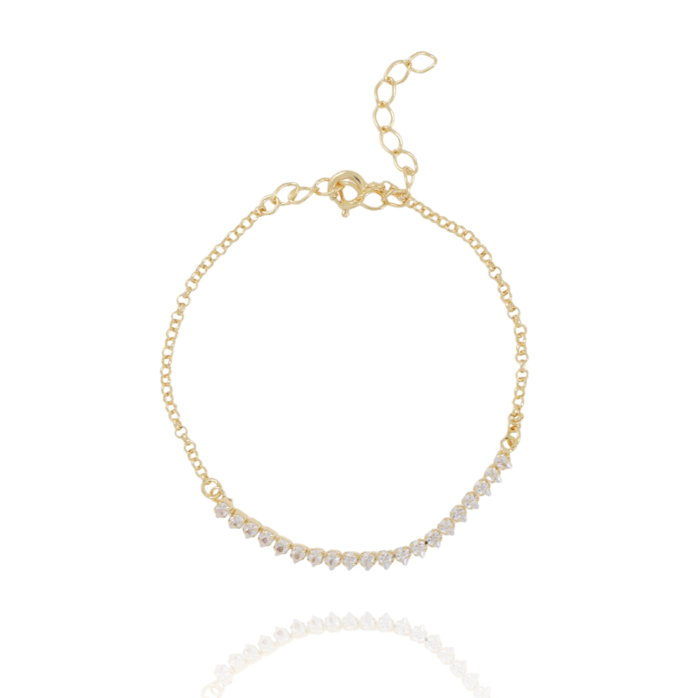 Encante-se com essa pulseira!Esta linda pulseira CRAVEJADA DE MINI GOTAS DE ZIRCÔNIAS CRISTAIS é feita com LATÃO BANHADO A OURO 18K de alta qualidade.
