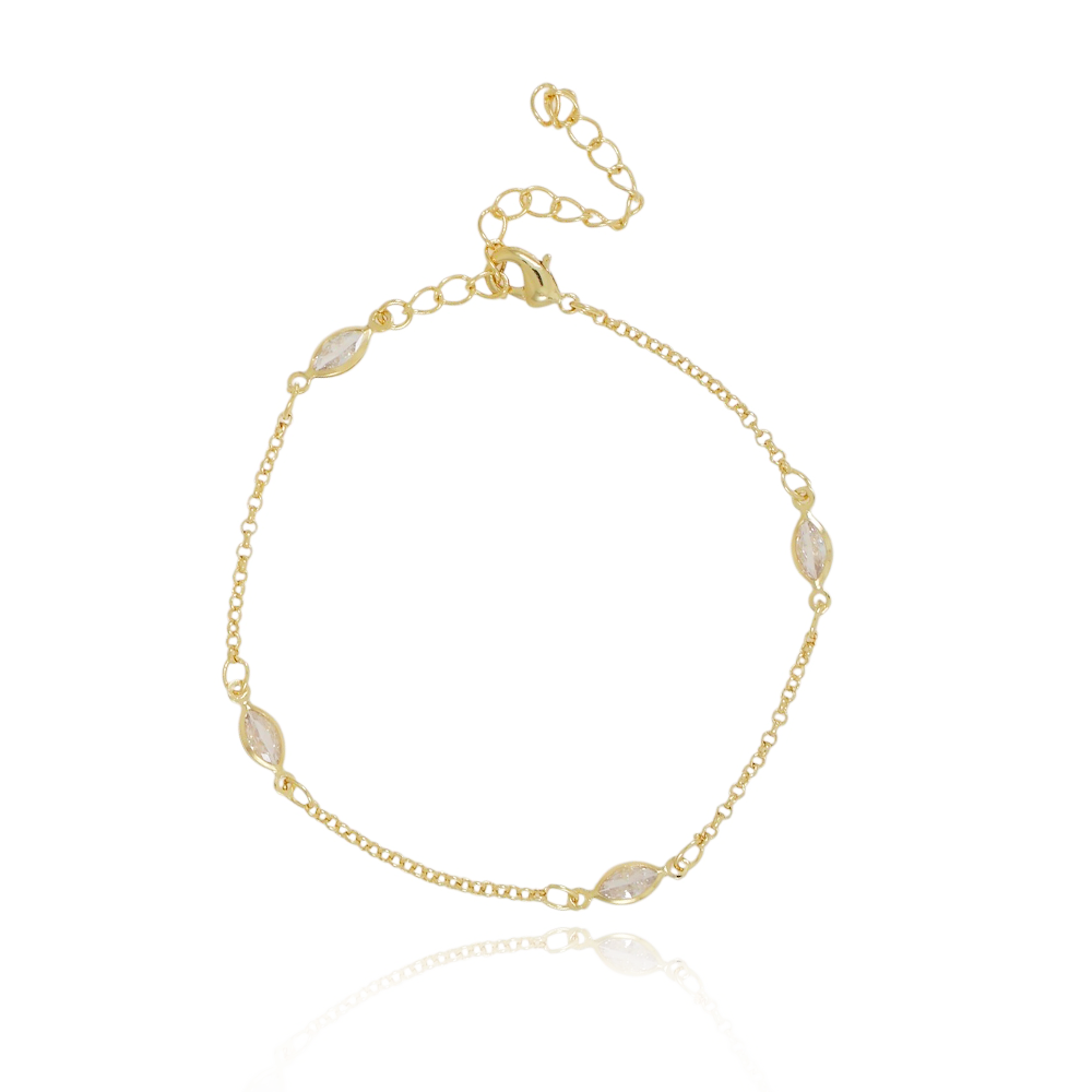 Encante-se com essa pulseira!Esta linda pulseira COM DETALHES CRAVEJADOS DE ZIRCÔNIAS CRISTAIS é feita com LATÃO BANHADO A OURO 18K de alta qualidade.
