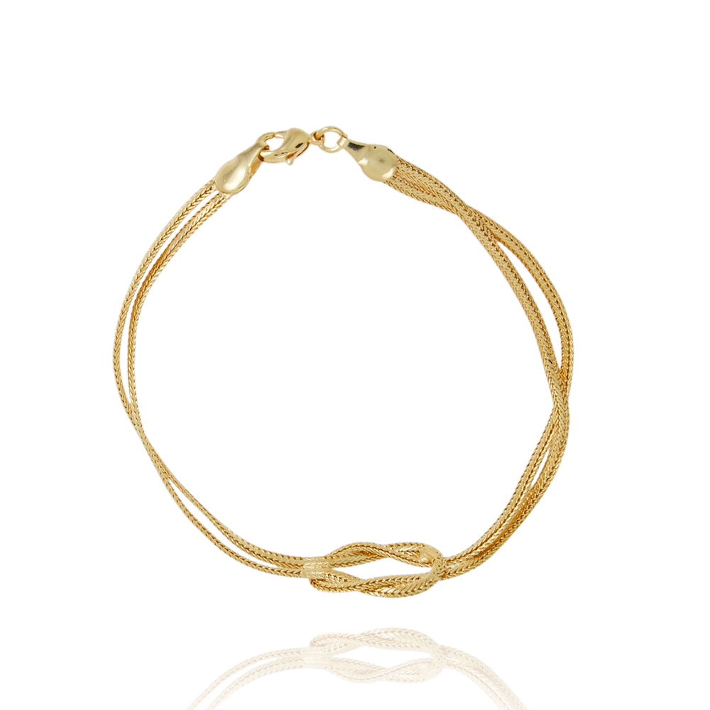 Encante-se com essa pulseira!Esta linda pulseira MALHA COM NÓ é feita com LATÃO BANHADO A OURO 18K de alta qualidade.