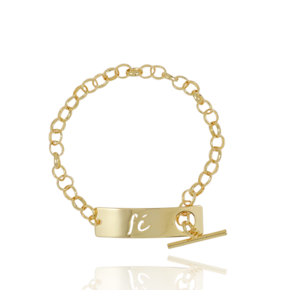 Encante-se com essa pulseira!Esta linda pulseira FÉ COM FECHO T é feita com LATÃO BANHADO A OURO 18K de alta qualidade.