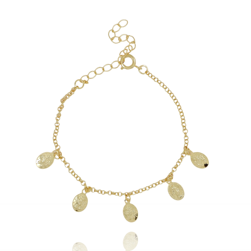Encante-se com essa pulseira!Esta linda pulseira ELOS COM MEDALHAS DE NOSSA SENHORA DAS GRAÇAS é feita com LATÃO BANHADO A OURO 18K de alta qualidade.