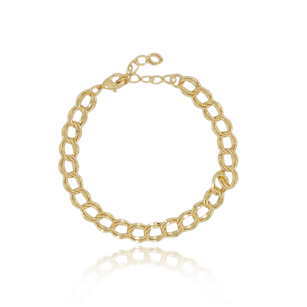 Encante-se com essa pulseira!Esta linda pulseira DE ELOS GRUMET II é feita com LATÃO BANHADO A OURO 18K de alta qualidade.