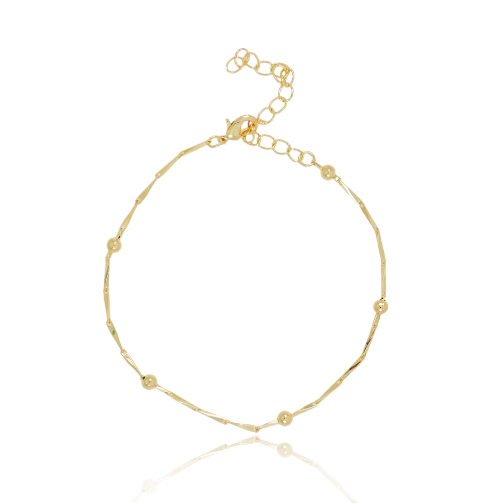 Encante-se com essa pulseira!Esta linda pulseira FIO TORCIDO COM BOLINHAS é feita com LATÃO BANHADO A OURO 18K de alta qualidade.