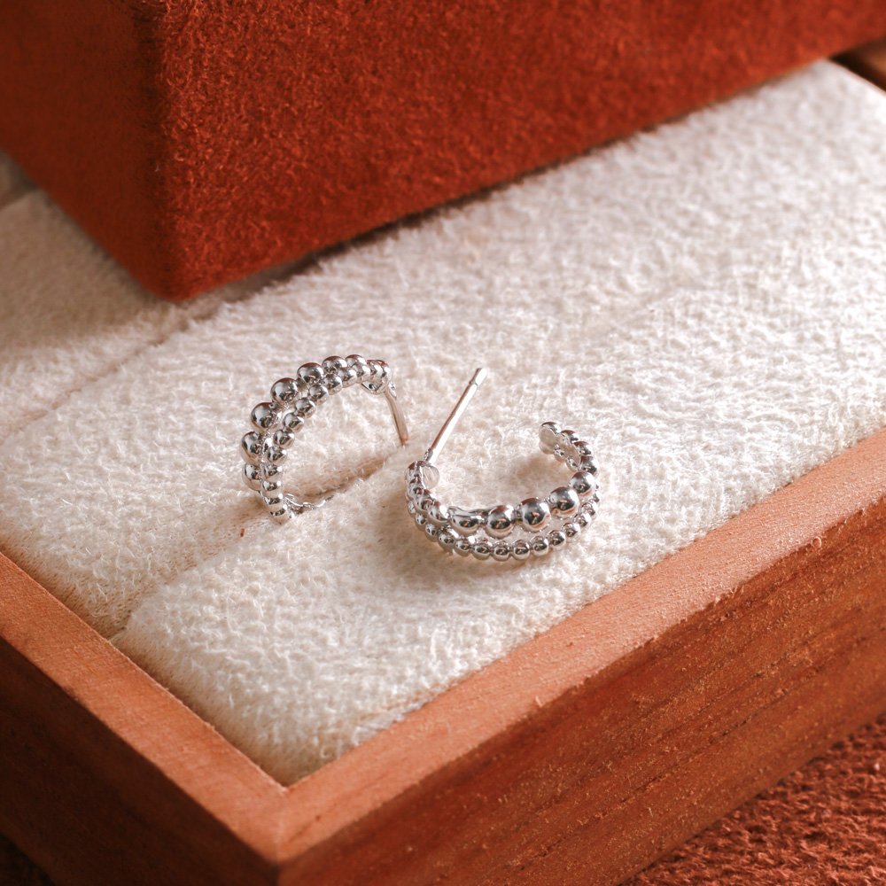 Encante-se com esse brinco!Este lindo brinco MEIA ARGOLA FIO DUPLO DE BOLINHAS é feito com LATÃO BANHADO A RÓDIO BRANCO de alta qualidade.