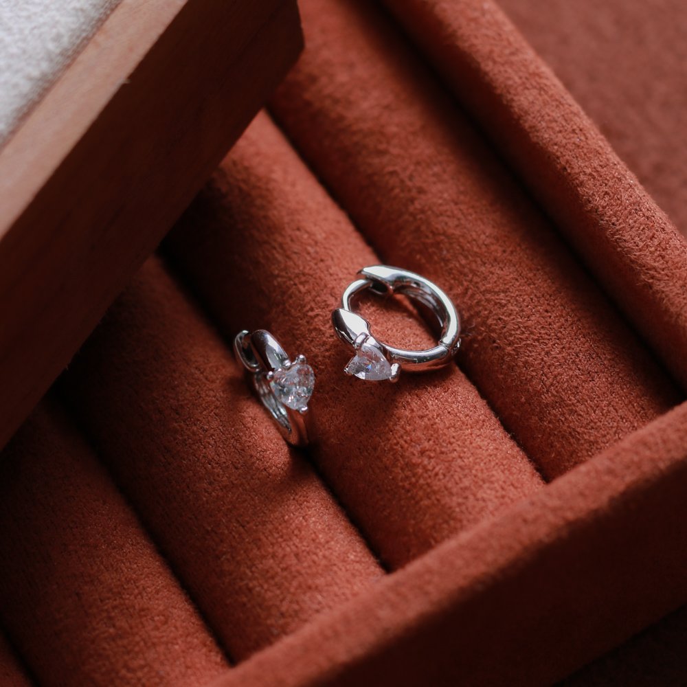 Encante-se com esse brinco!Este lindo brinco DE ARGOLA ARTICULADA COM CORAÇÃO CRAVEJADO é feito com LATÃO BANHADO A RÓDIO BRANCO de alta qualidade.