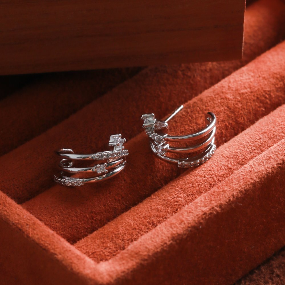 Encante-se com esse brinco!Este lindo brinco MEIA ARGOLA CRAVEJADA é feito com LATÃO BANHADO A RÓDIO BRANCO de alta qualidade.