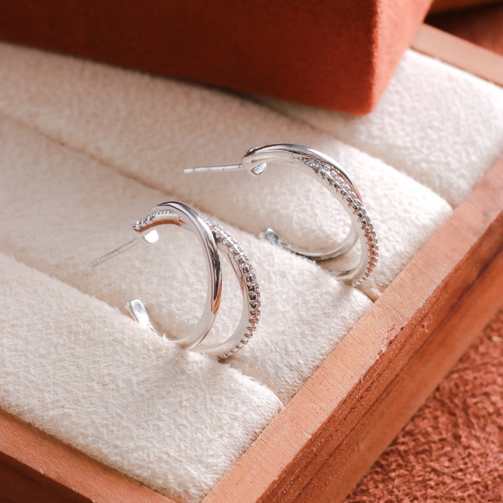 Tn02239-Rd Brinco Meia Argola Cristal - Ródio Branco.
