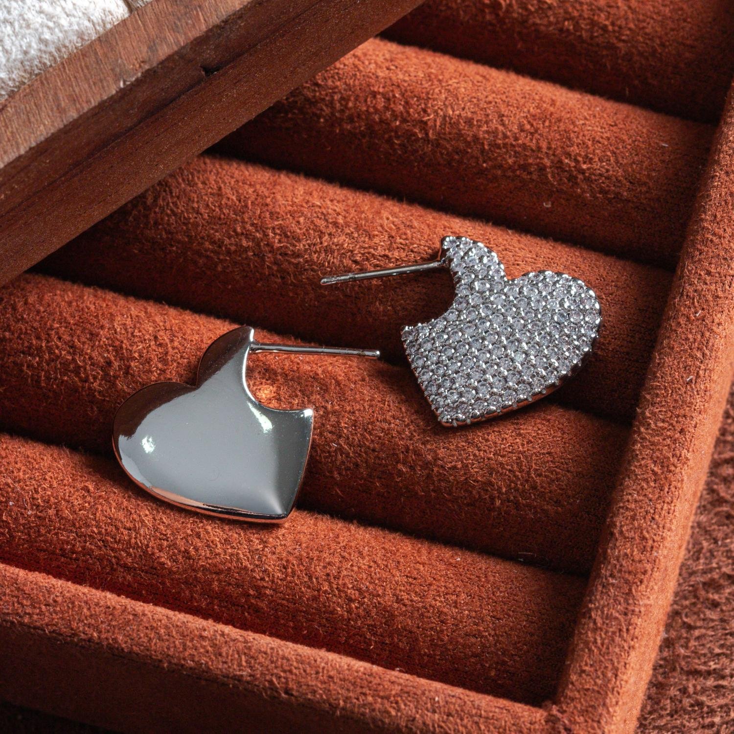 Encante-se com esse brinco!Este lindo brinco DE CORAÇÃO CRAVEJADO DE ZIRCÔNIAS CRISTAL E LISO é feito com LATÃO BANHADO A RÓDIO BRANCO de alta qualidade.