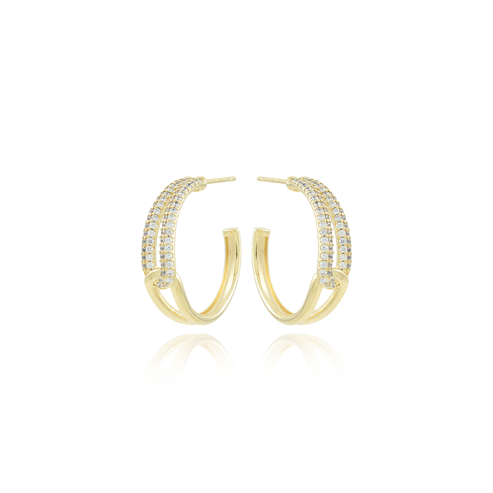 Encante-se com esse brinco!Este lindo brinco MEIA ARGOLA PASSADA CRAVEJADA CRISTAL E LISA é feito com LATÃO BANHADO A OURO 18K de alta qualidade.