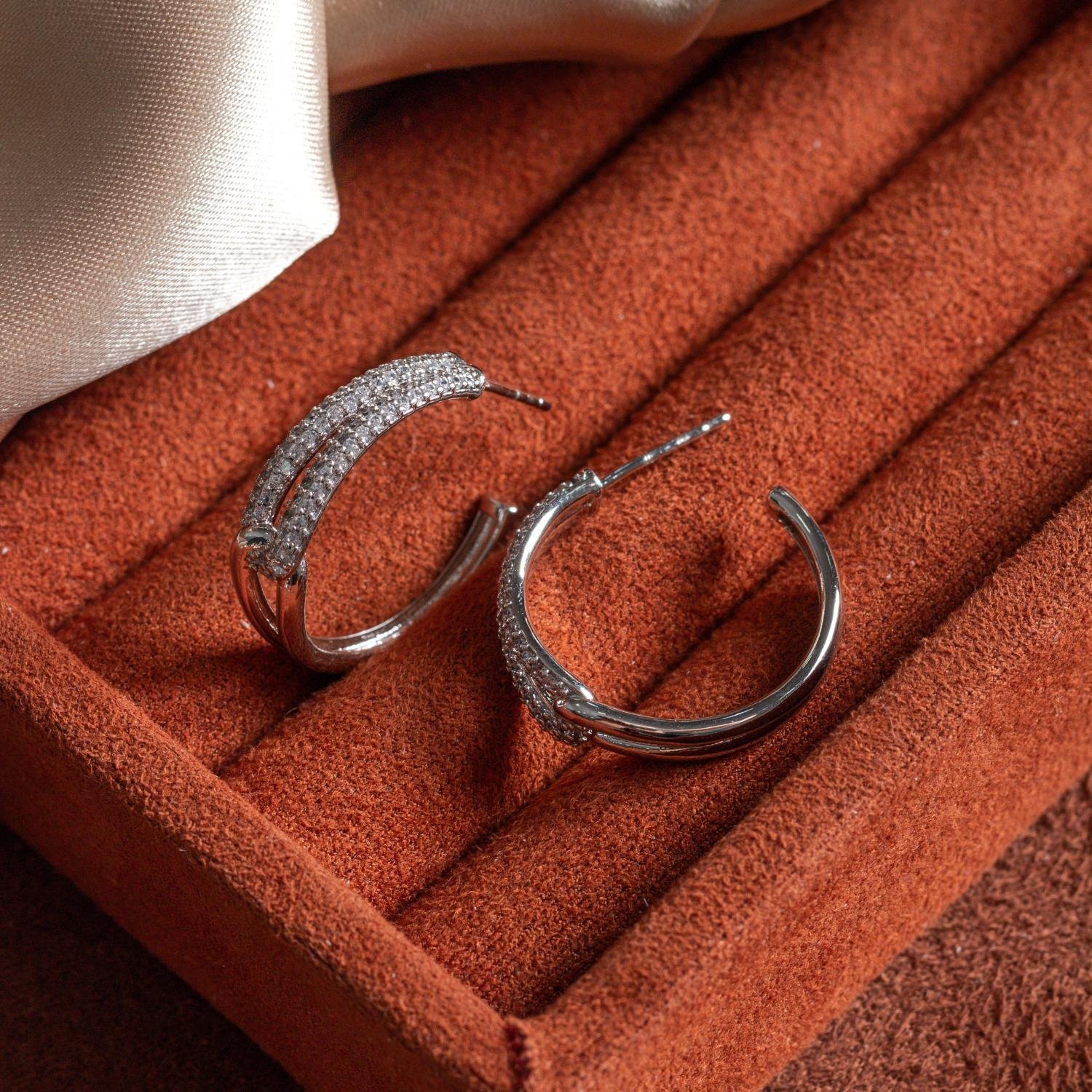 Encante-se com esse brinco!Este lindo brinco MEIA ARGOLA ENTRELAÇADA CRAVEJADA DE ZIRCÔNIAS CRISTAIS é feito com LATÃO BANHADO A RÓDIO BRANCO de alta qualidade.