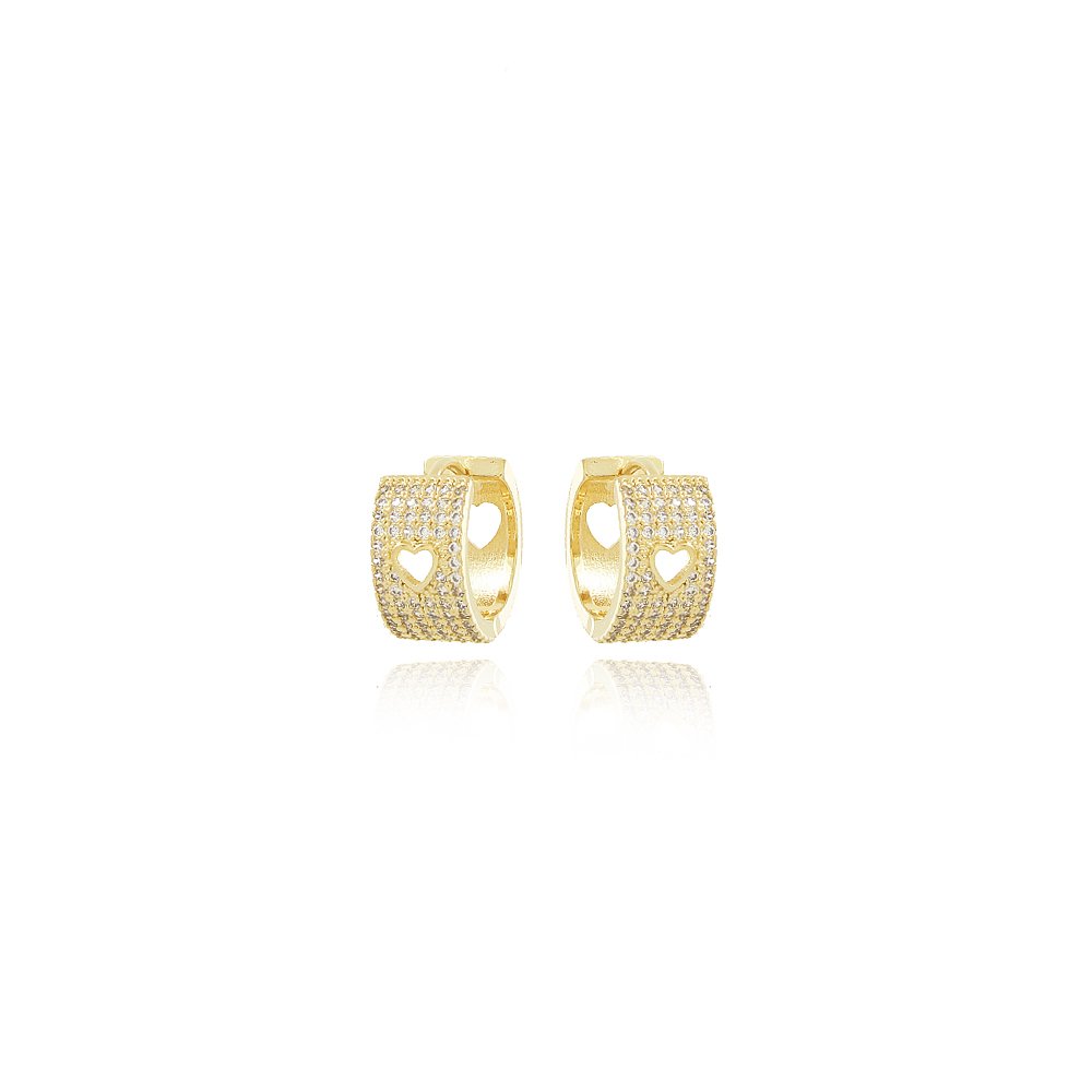 Tn03154-Do Brinco De Argolinha Articulada Com Coração Vazado Cravejada De Zircônias