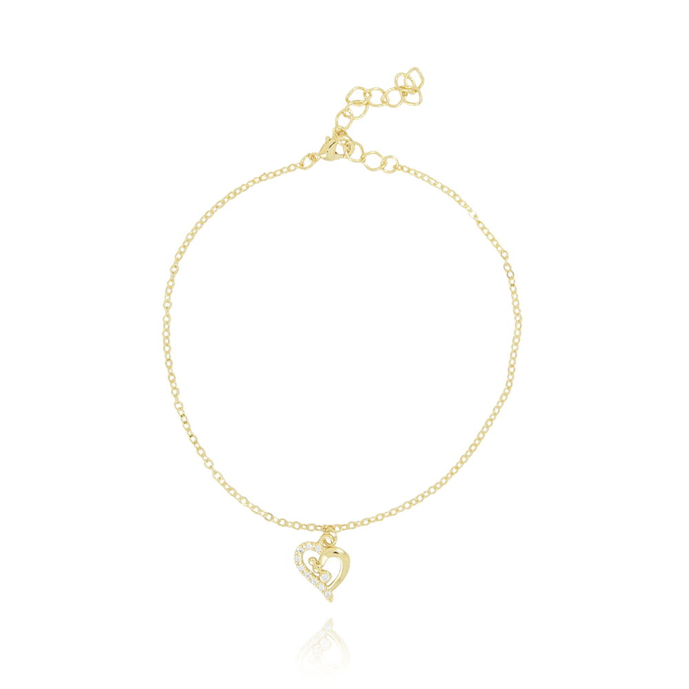 Encante-se com essa tornozeleira!Esta linda tornozeleira COM PINGENTE DE CORAÇÃO CRAVEJADO CRISTAL é feito com LATÃO BANHADO OURO 18K de alta qualidade.
