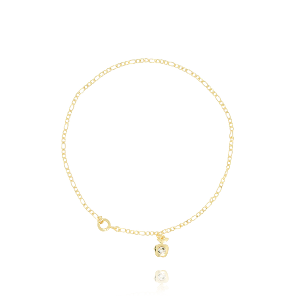 Encante-se com essa tornozeleira!Esta linda tornozeleira COM PINGENTE DE MAÇÃ CRISTAL é feita com LATÃO BANHADO A OURO 18K de alta qualidade.
