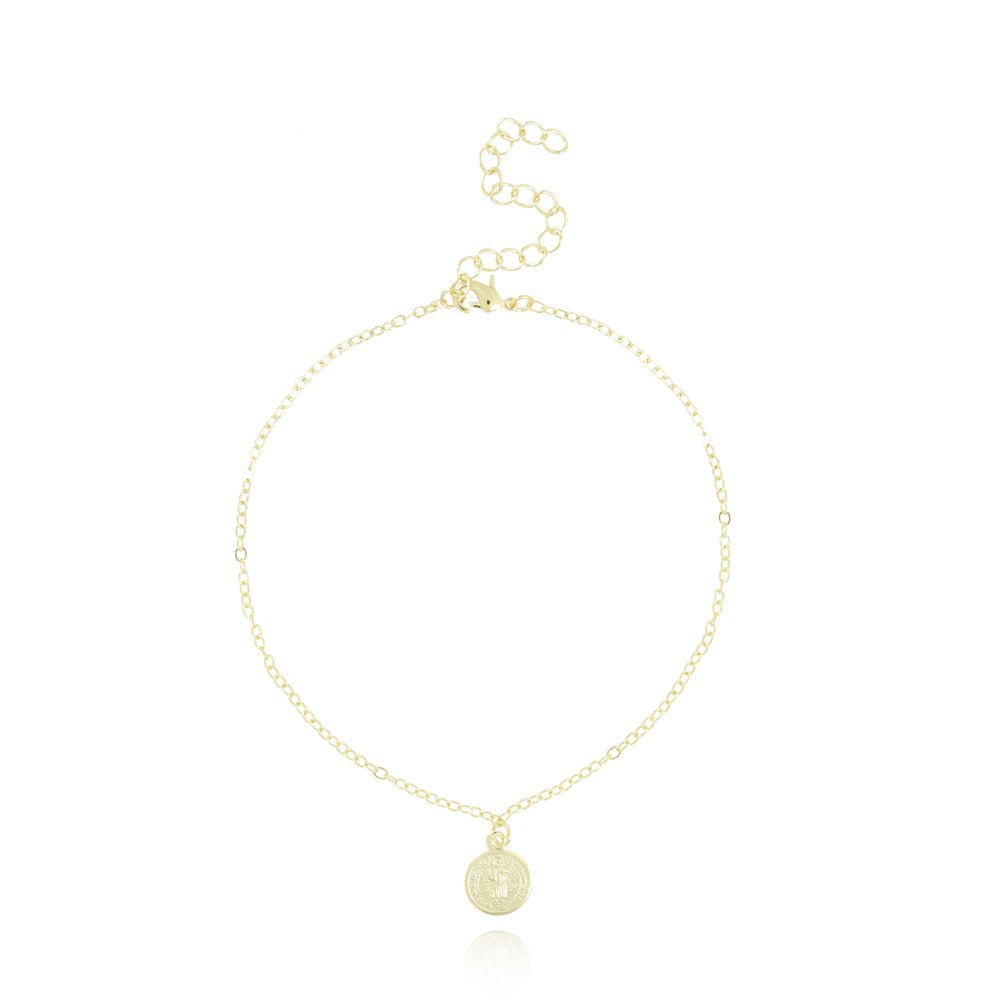 Encante-se com essa tornozeleira!Esta linda tornozeleira COM MEDALHA DE SÃO BENTO é feito com LATÃO BANHADO A OURO 18K de alta qualidade.