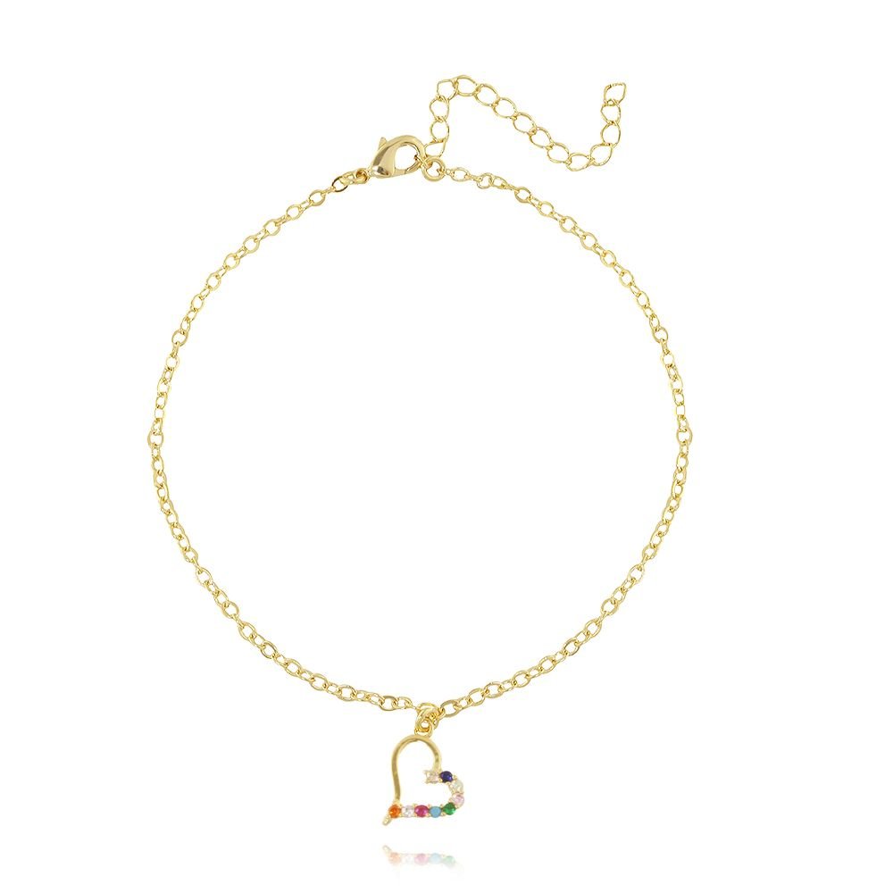 Tor-253-Fo Tornozeleira De Coração Cravejado De Zircônias Cristal.