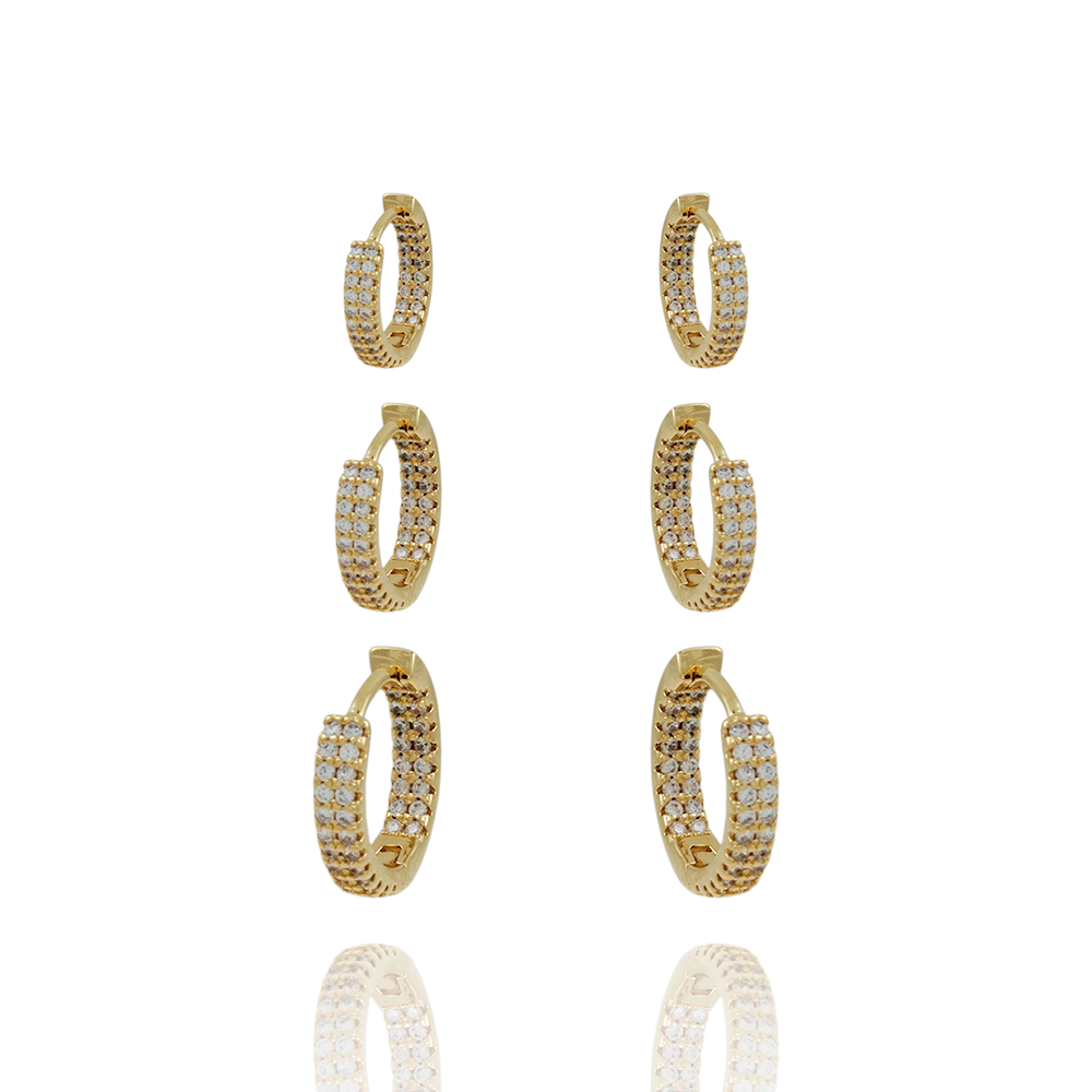 Encante-se com esse brinco!Este lindo brinco TRIO DE BRINCOS DE ARGOLAS ARTICULADAS CRAVEJADOS DENTRO E FORA CRISTAL é feito com LATÃO BANHADO A OURO 18K de alta qualidade.