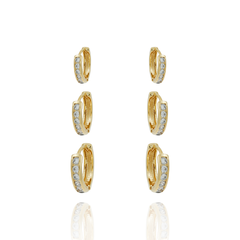 Trio-1150-Do Trio De Brincos De Argolas Articuladas Cravejados De Zircônias Cristais (9mm/11mm/13mm).
