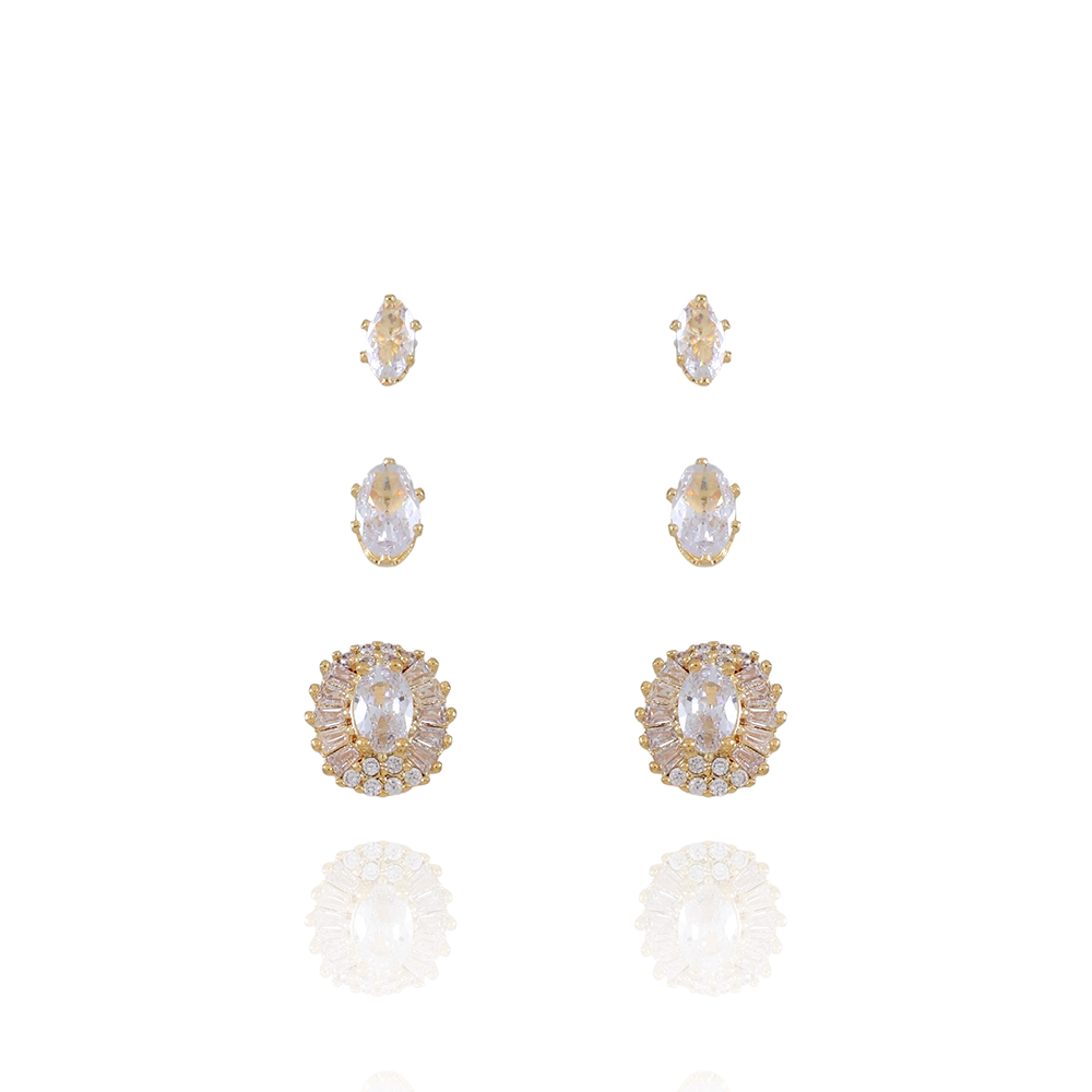 Trio-1181-Do Trio De Brincos Cravejados De Zircônias Cristais.